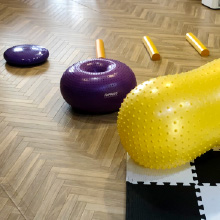 少しでも長く元気にお散歩できるよう筋力維持のための運動器具、犬用バランスボール・バランスディスク・ポール跨ぎ用ポールを完備。